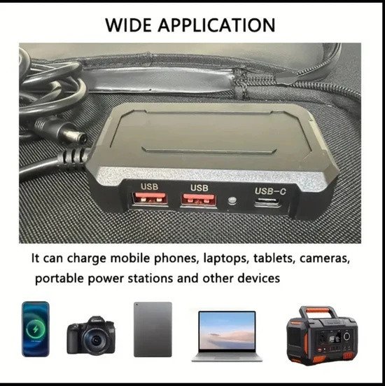 With both USB and DC output ports, this 200W Solar High Efficiency Panel can power 12V batteries, portable power stations, phones, fans, coolers, and more. Perfect for outdoor adventures and load-shedding backup solutions.