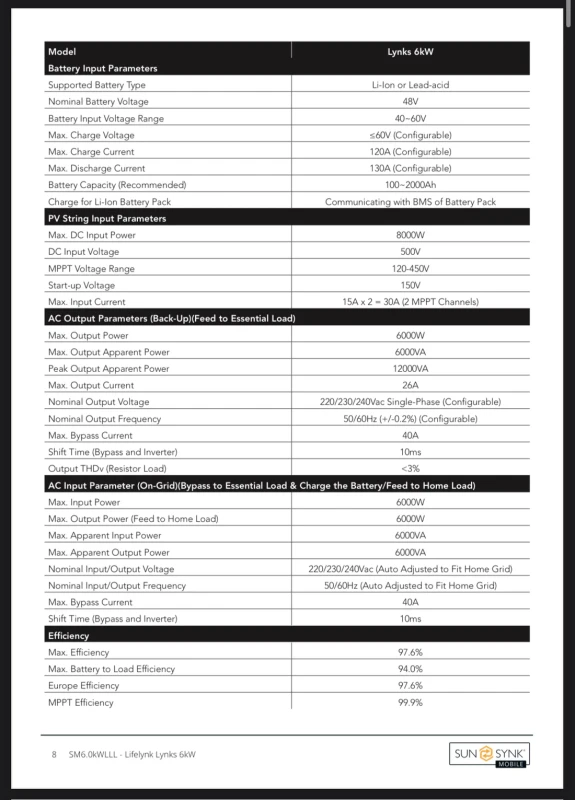 The Sunsynk 6KW Wi-Fi solar inverter supports both lithium-ion and lead-acid batteries, giving you flexibility and control over your energy storage.