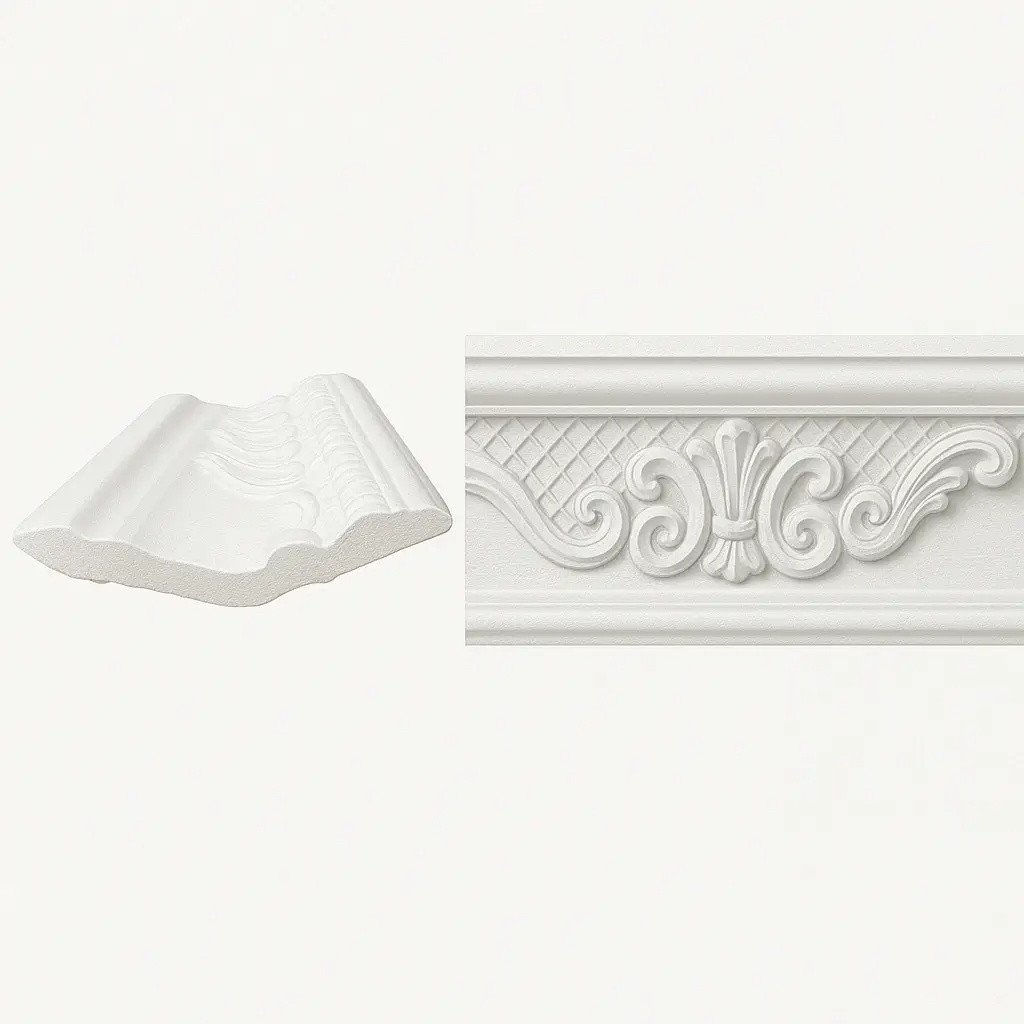 The EPS pattern cornice is crafted from high-quality Expanded Polystyrene (EPS), offering a lightweight yet sturdy design that’s easy to install and built to last. Its smooth white finish complements any interior — from classic to contemporary — creating a seamless transition between walls and ceilings.