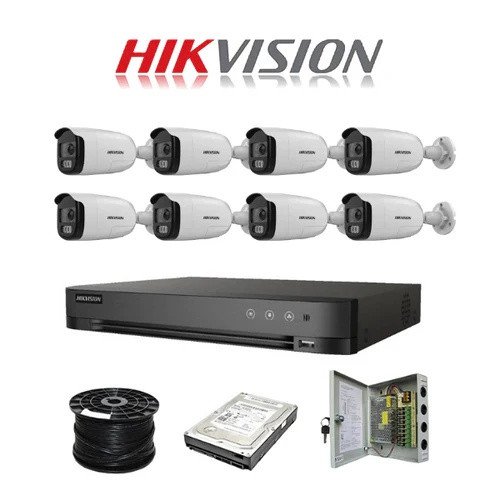 8 x 2MP ColorVU Cameras with PIR and Audio (Model: DS-2CE12DF3T-PIRXOS): High-resolution cameras with full-color night vision, PIR motion detection, and integrated audio.