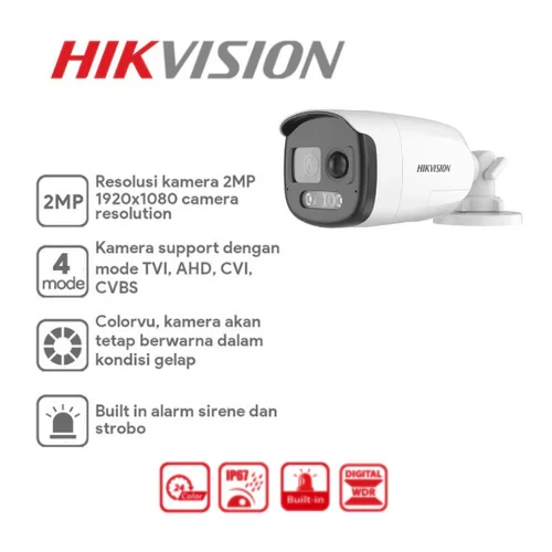 Camera Model: DS-2CE12DF3T-PIRXOS (2MP ColorVU Bullet Camera with PIR and Audio)