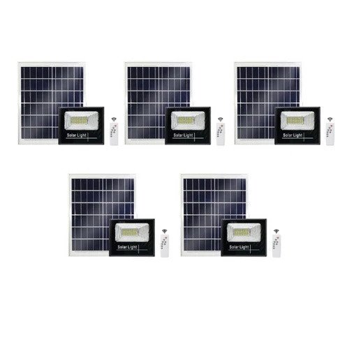 This Pack of 5 Solar 40W LED Floodlights delivers reliable lighting for smaller outdoor areas, combining affordability with smart functionality. Each unit includes a remote control and automatic day/night switch, making it perfect for security, pathway, or garden lighting.