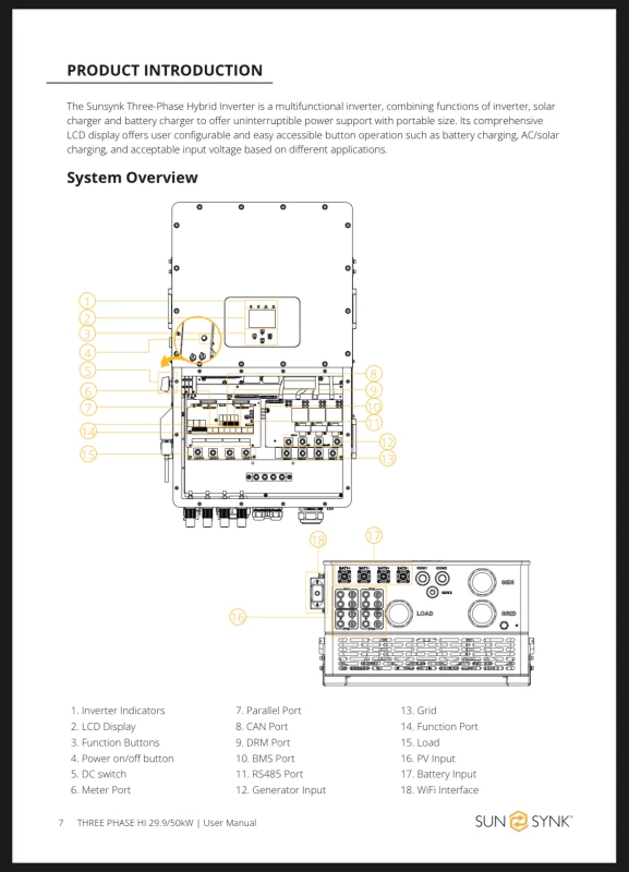 | Model | Sunsynk 50KVA 3-Phase High Voltage Hybrid PV |