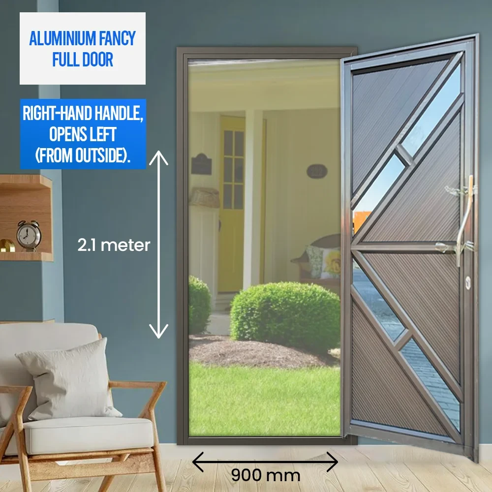 Upgrade your space with a modern Aluminium door system designed for durability, style, and long-term performance. The Premium Aluminium Fancy Full Single Door combines sleek aesthetics with solid construction, making it an excellent choice for residential, office, and commercial applications.