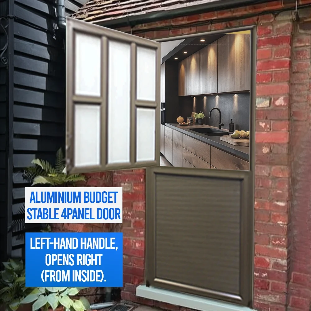 Customizable: The ALUMINIUM BUDGET STABLE 4 PANEL DOOR offers a range of customization options. Whether you need a specific size or finish to match your property’s aesthetic, this door can be tailored to meet your exact needs.