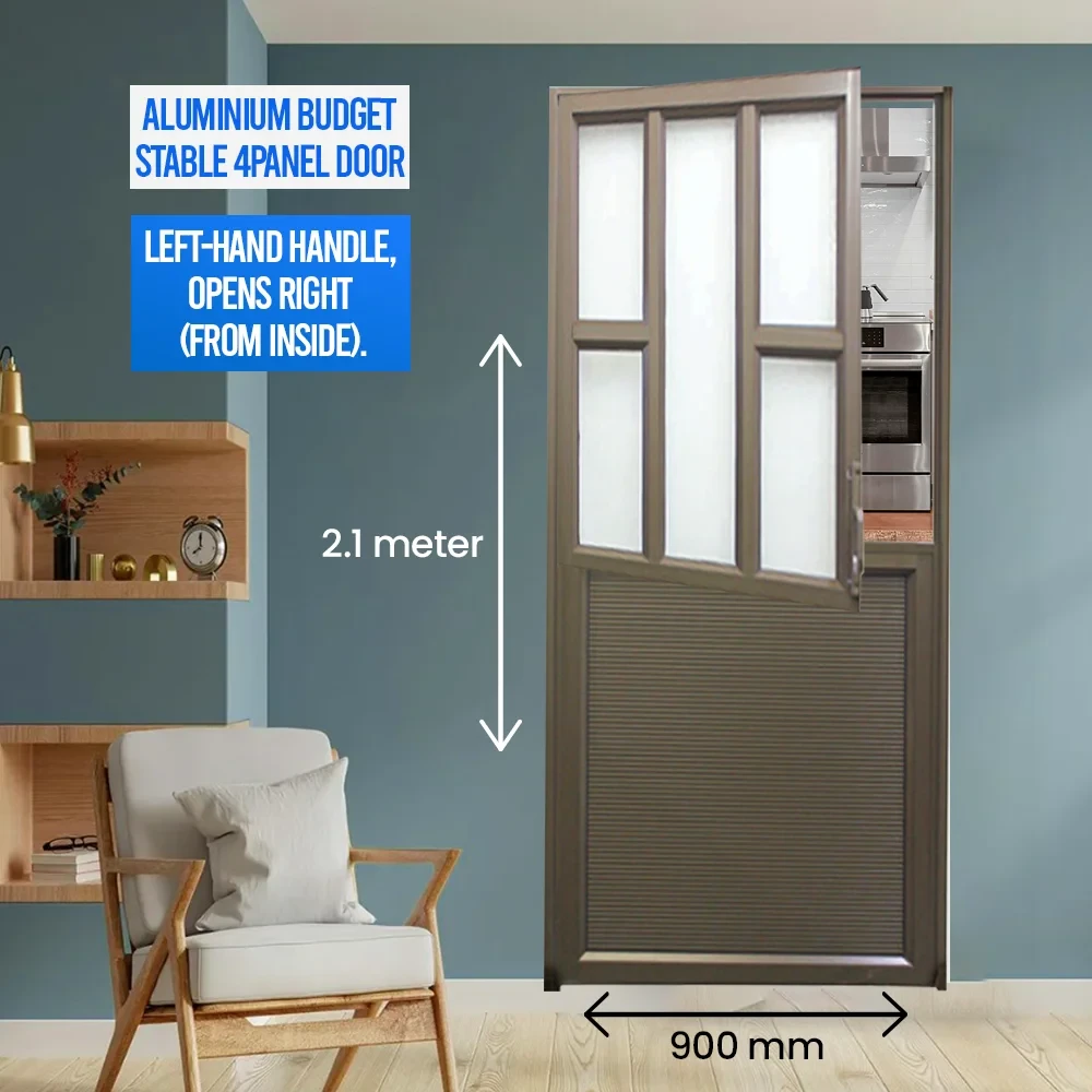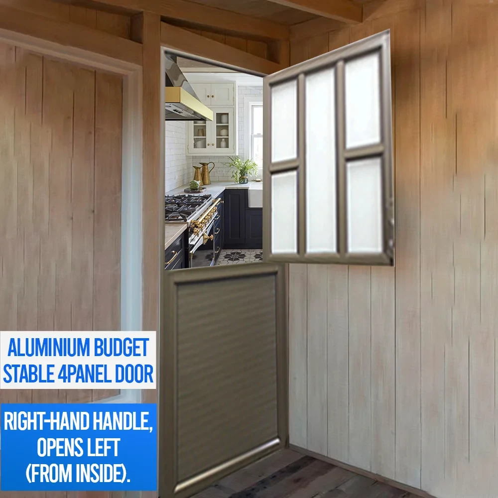 High-Quality Aluminium Construction: The ALUMINIUM BUDGET STABLE 4 PANEL DOOR is made from top-grade aluminium, providing superior strength and durability. This ensures that the door will perform well over time, even in tough conditions.