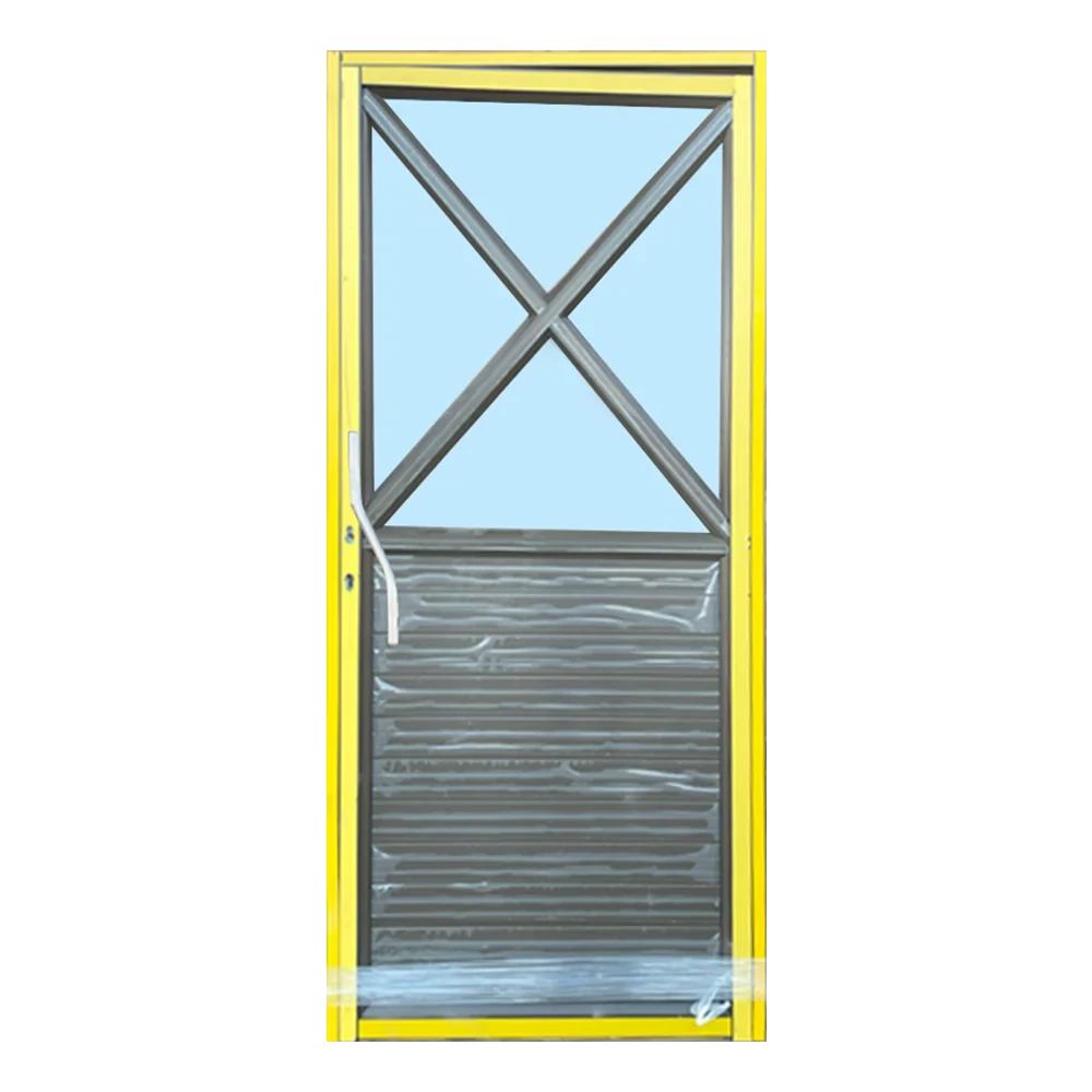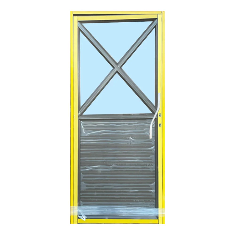 The Aluminium X-Cross Door is the perfect combination of modern aesthetics, durability, and functionality. This premium aluminium door features a distinctive X-cross frame with vibrant blue-tinted tempered glass and a bold yellow perimeter trim, adding a unique touch to any property. Whether you're upgrading your main entrance, patio, or office, the Aluminium X-Cross Door provides both style and long-lasting performance.