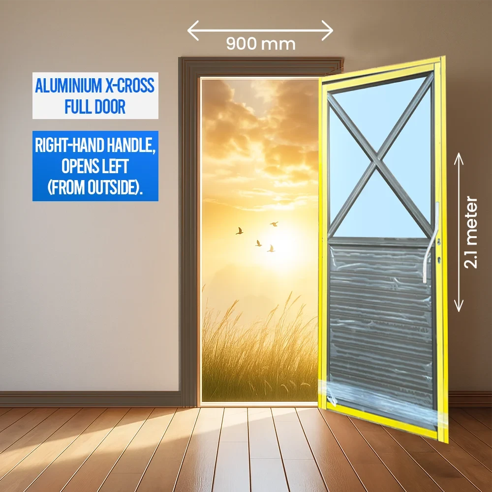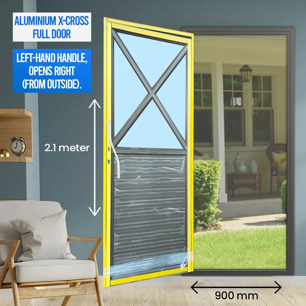 Versatile Use: Ideal for main entrances, patios, offices, and commercial properties, the Aluminium X-Cross Door fits seamlessly into a variety of architectural styles and functions.