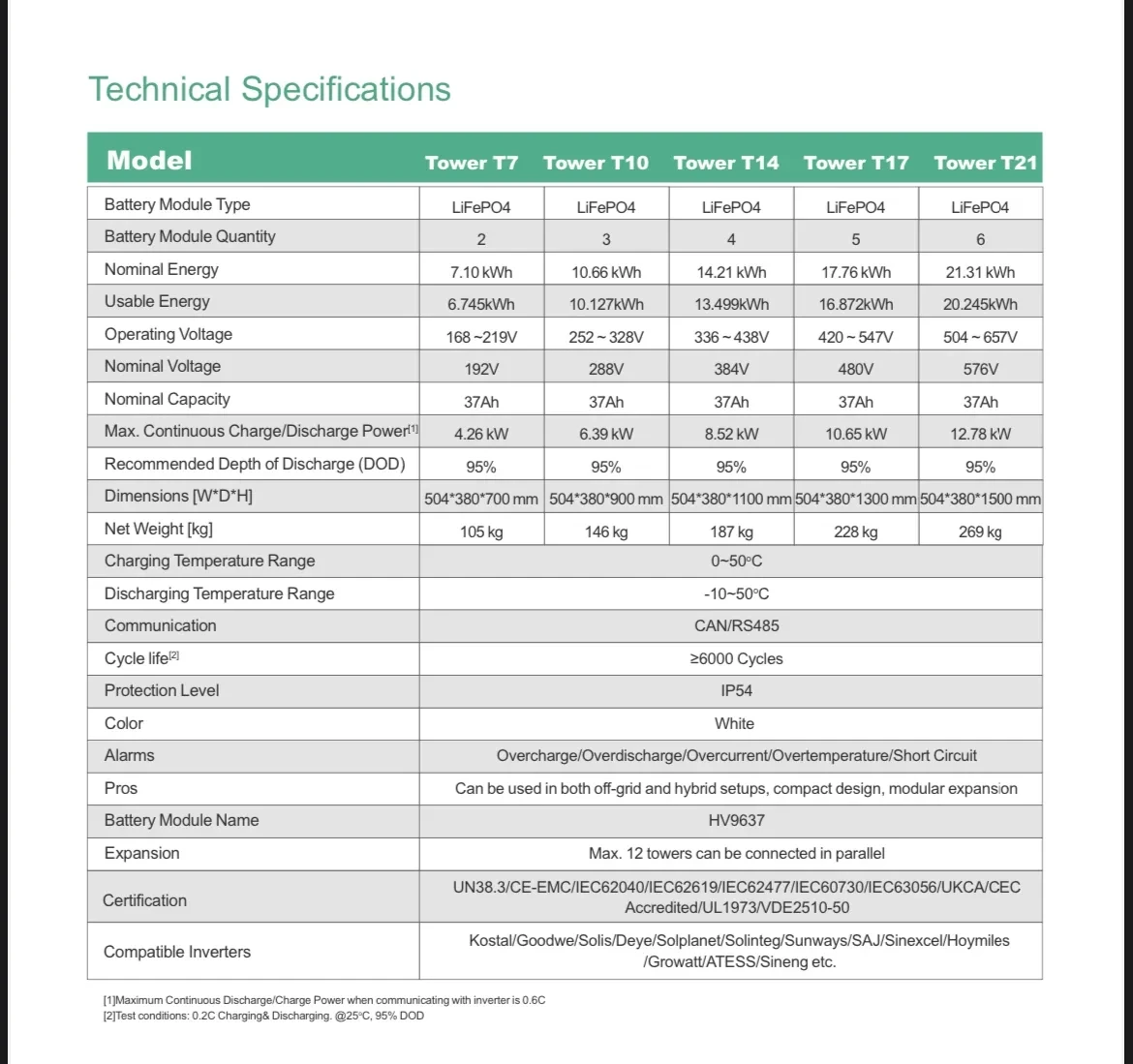 With 21.31kWh of nominal energy and 20.245kWh usable capacity, the T21 Dyness Tower battery offers reliable and continuous power, making it ideal for industrial, commercial, and large-scale solar storage projects.