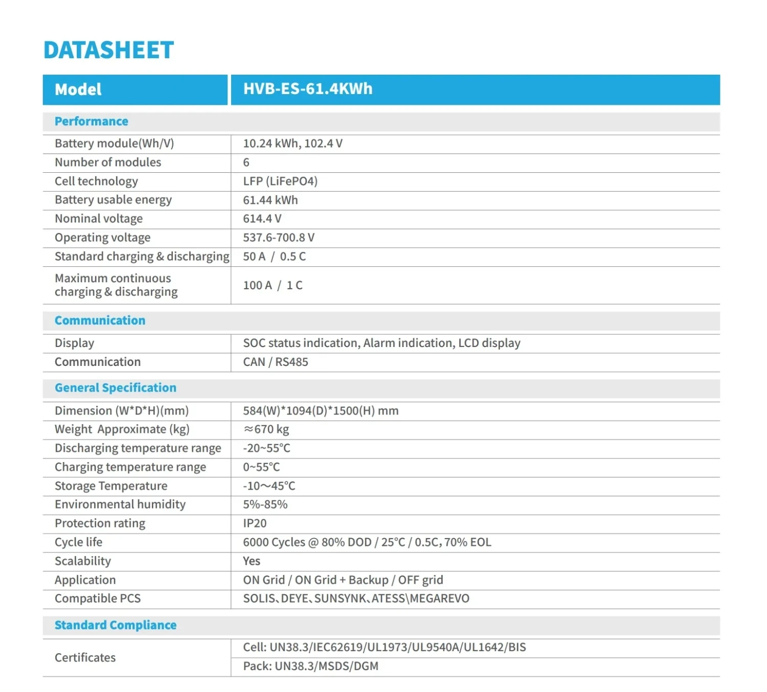 The ESENER 61.4kWh Air Cooled Lithium Battery is a cutting-edge energy storage solution designed for industrial, commercial, and large-scale solar installations. Built with advanced LiFePO4 (Lithium Iron Phosphate) technology, this lithium battery delivers safe, efficient, and long-lasting power for demanding high-voltage applications.