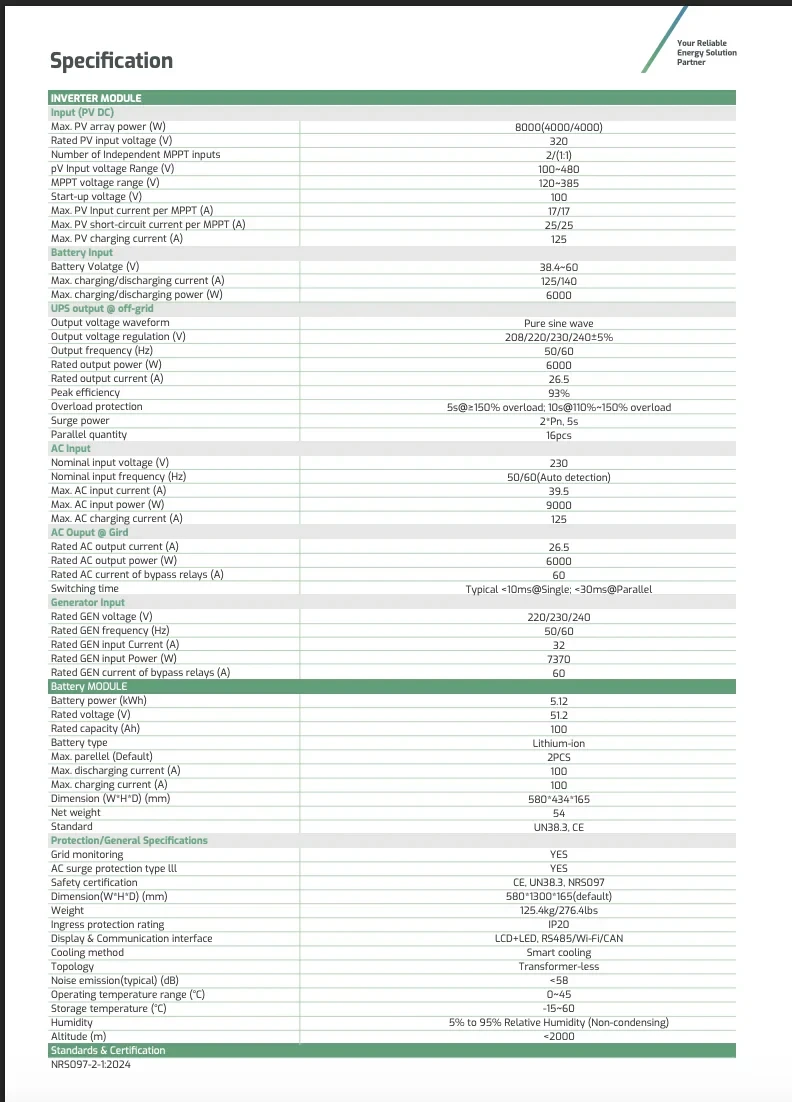 | Inverter Output Power | 6 kW |