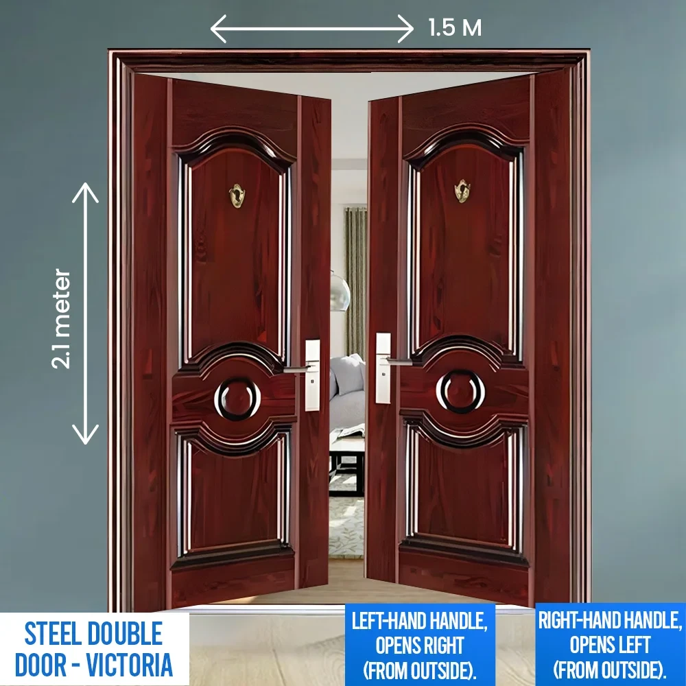 Size: Measuring 1.5 meters in width and 2.1 meters in height, this Steel Door Victoria Double is a perfect fit for both residential and commercial spaces that require a grand and imposing entrance.