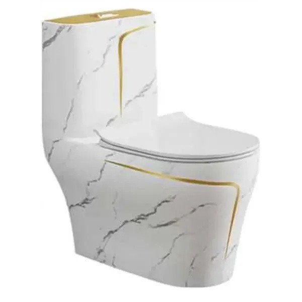 A white toilet pan with gold and grey accents offers the perfect balance of purity, sophistication, and luxury. It elevates your bathroom from functional to extraordinary, creating a serene and stylish environment. Whether for a modern home or a high-end renovation project, this toilet pan is a true centerpiece that reflects refined taste.